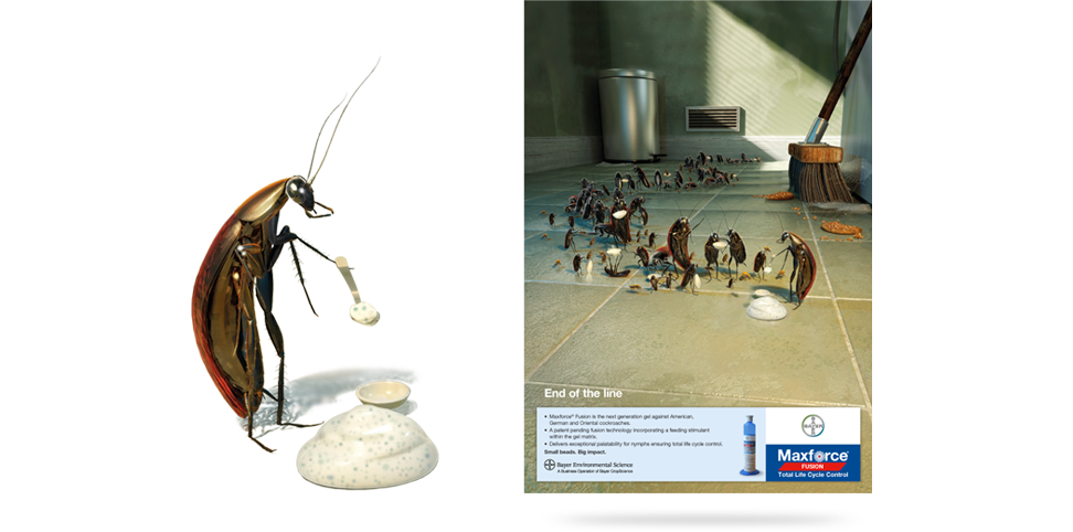 To design and develop product logo's and positioning statements for a range of Bayer cockroach baits alongside campaign visuals to be launched internationally.